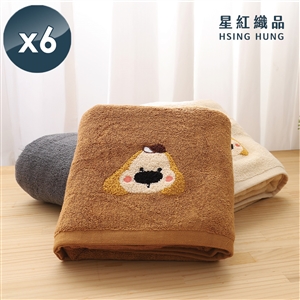 【星紅織品】可愛酷酷狗速乾純棉浴巾x6入
