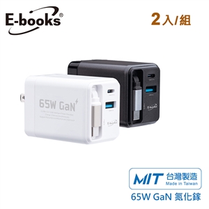(2入組)E-books B121 自帶快充伸縮線65W氮化鎵抗彎折極速充電器_台灣製造