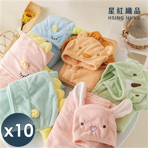 【星紅織品】可愛動物造型珊瑚絨兒童斗蓬浴巾x10入