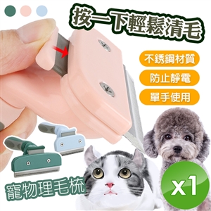 【QIDINA】一鍵清理寵物理毛梳x1入