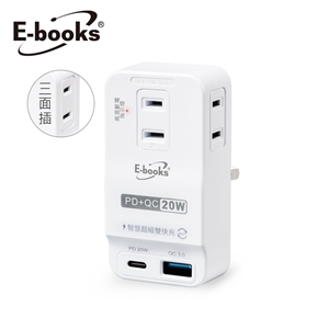 E-books B83 20W PD+QC3.0 三插二埠壁插