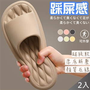 【QiMart】踩屎感菱格紋厚底防水止滑拖鞋(B款)x2入