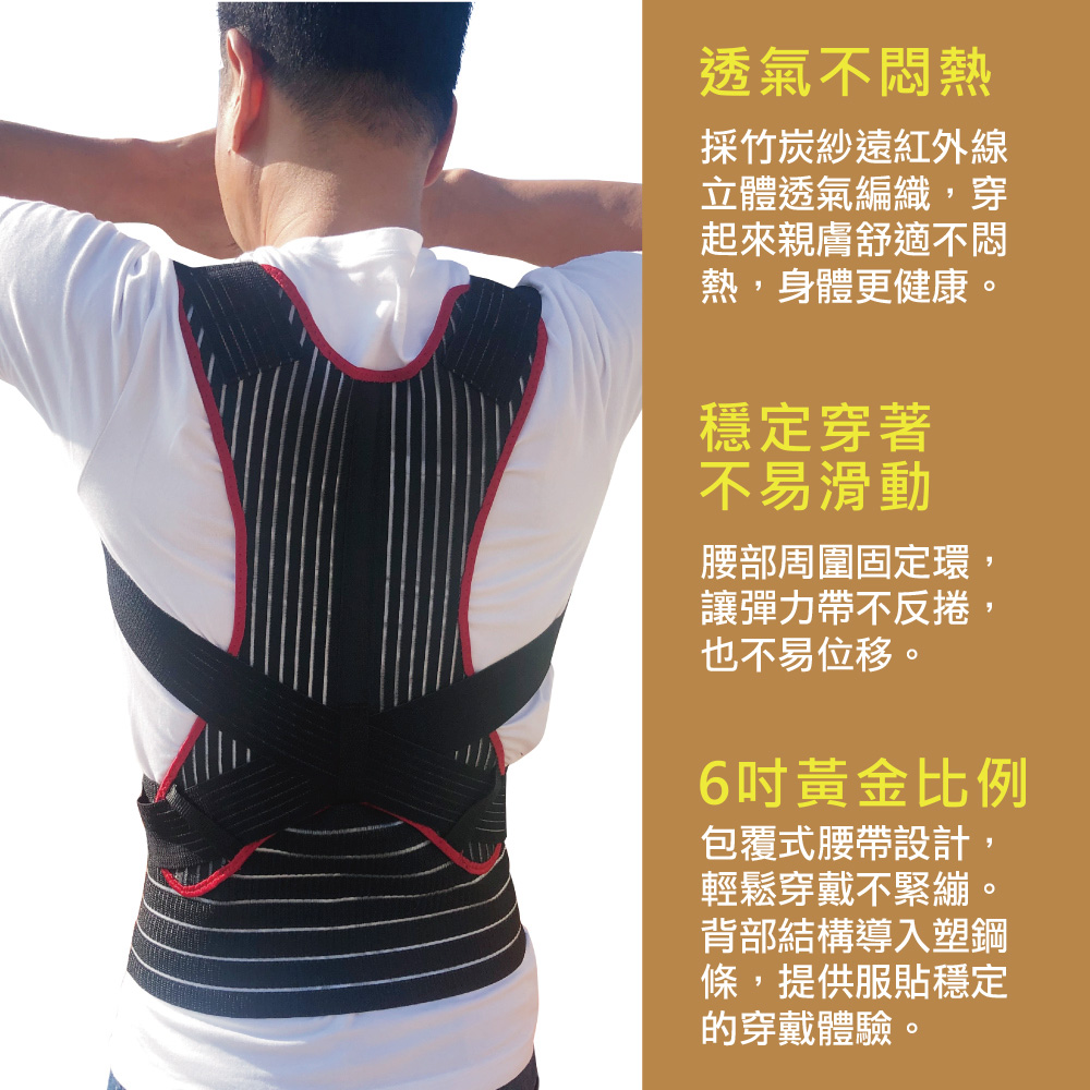 竹炭材質+6顆鍺石再加上2顆磁石開肩挺背,改善姿勢,塑鋼條加強支撐,全透氣材質不悶熱一黏二拉三挺背簡單操作,可依照個人需求調整鬆緊度,隨心所意,自己穿脫不求人