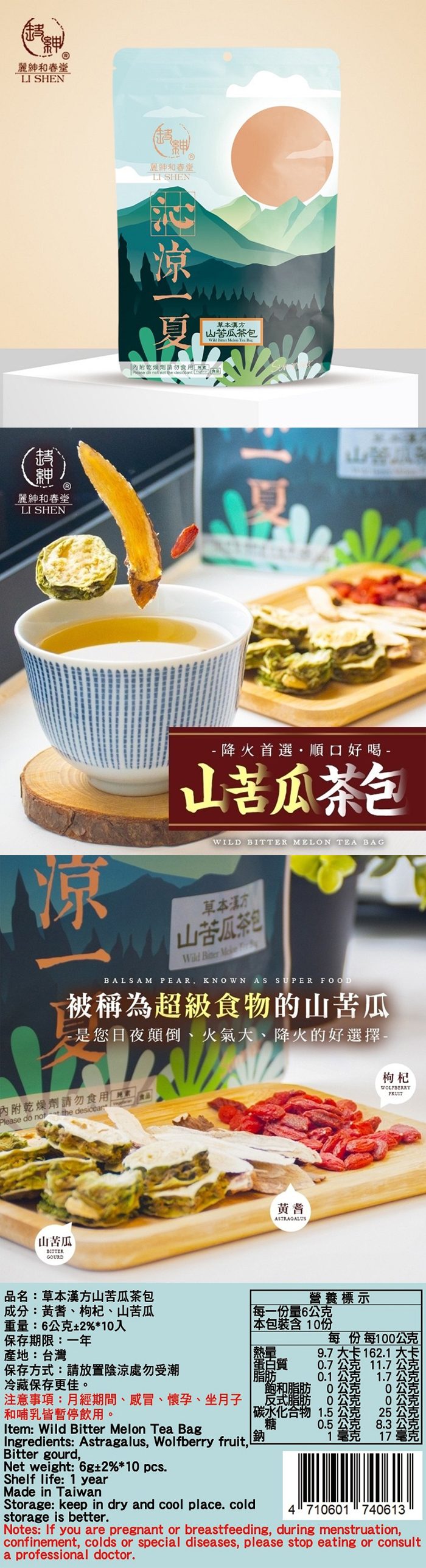 加入黃耆.枸杞後做成山苦瓜茶包,便利大家的需求