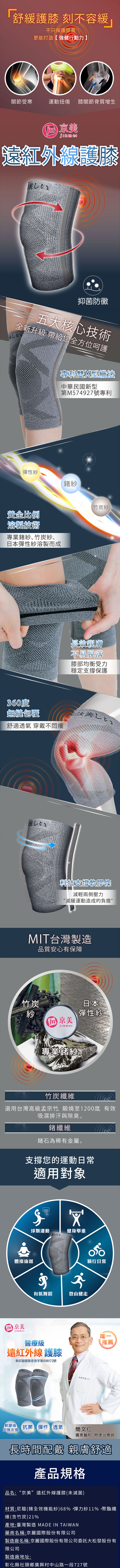 【護膝王】京美 遠紅外線護膝加大版-2雙組 加贈能量健康按摩襪(船型)