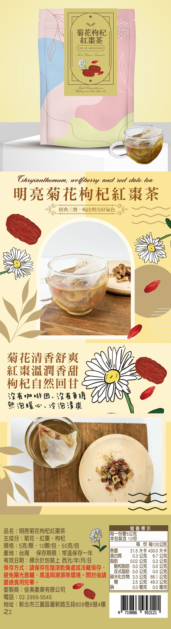 菊花清香舒爽 紅棗溫潤香甜 枸杞自然回甘
