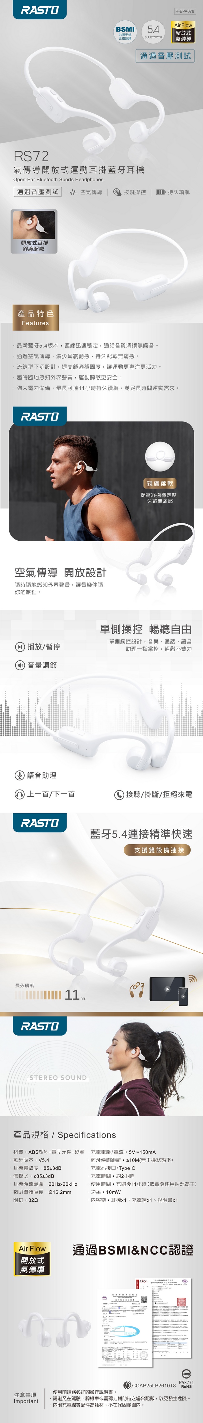 RASTO RS72 氣傳導開放式運動耳掛藍牙耳機