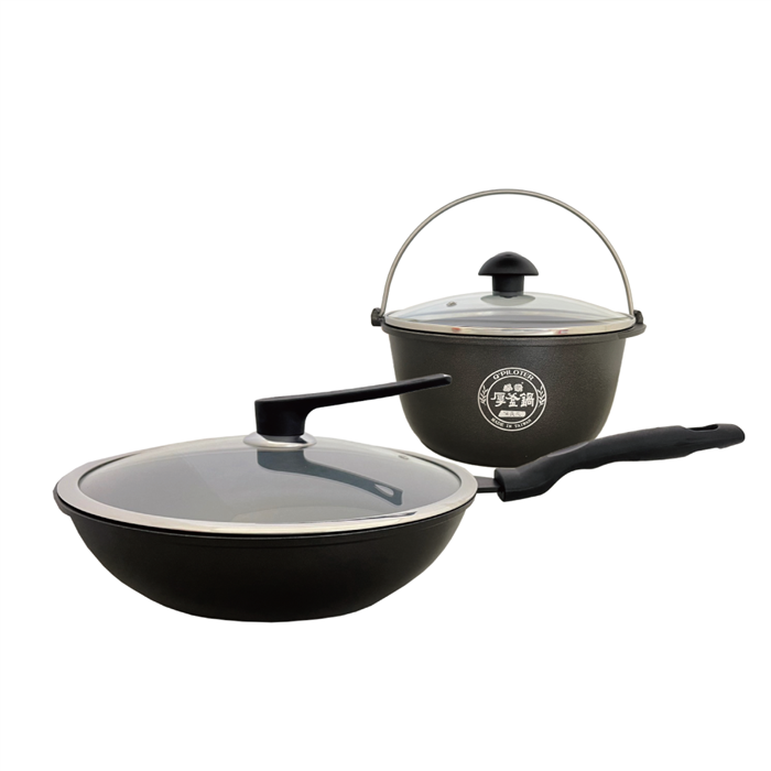 派樂備長炭厚釜炒菜鍋32cm+厚釜萬用鍋22cm