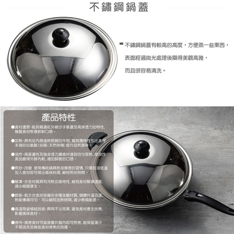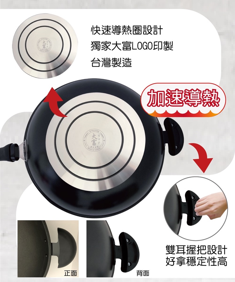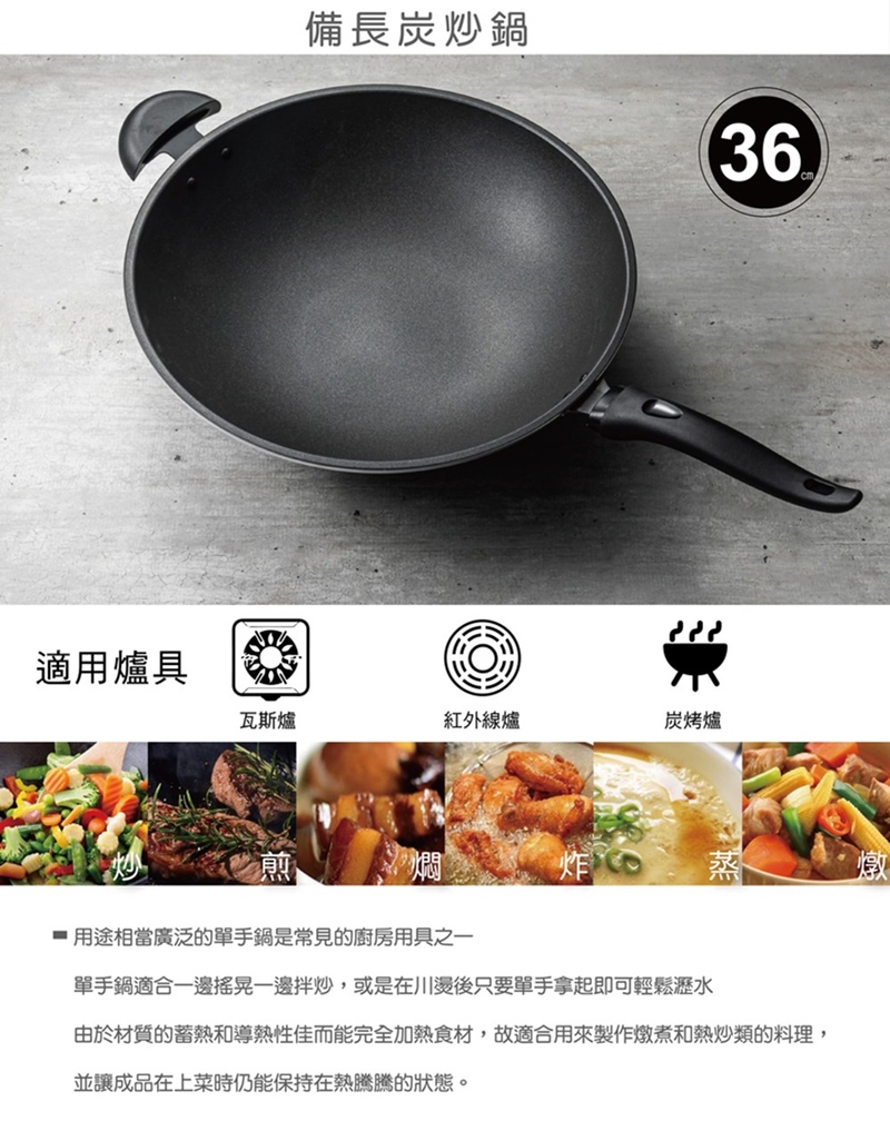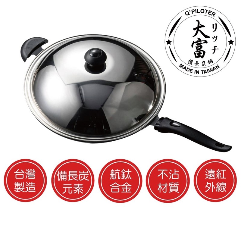 品名:大富備長炭炒鍋36cm附不鏽鋼鍋蓋