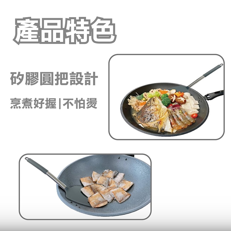 5.建議使用圓角鐵鏟或不沾專用鍋鏟,避除銳角型金屬物體敲擊造成損傷。
