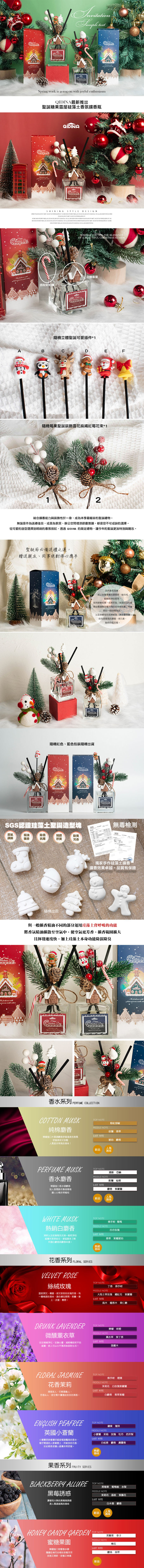 內容物 : 手工硅藻土擴香石x1、碳纖維薰香棒x5、聖誕配件x4(多款隨機)、200ml香氛擴香瓶、聖誕限定精美盒x1(2款隨機)