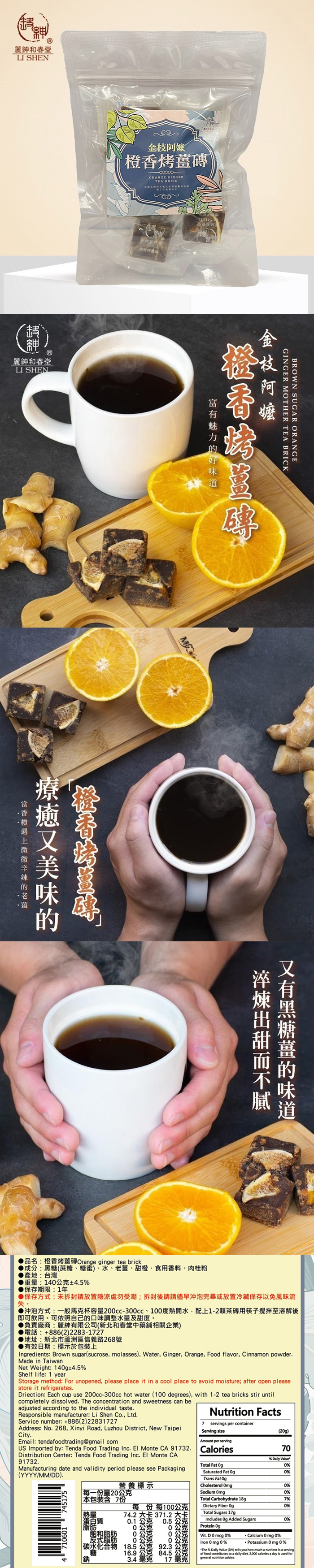 成分:黑糖(蔗糖、糖蜜)、水、老薑、甜橙、食用香料、肉桂粉