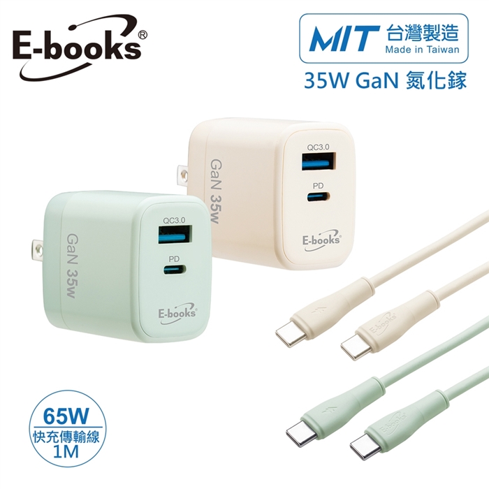 E-books B113【台灣製造】35W GaN 氮化鎵1A1C+65W C to C 智能快充傳輸線組