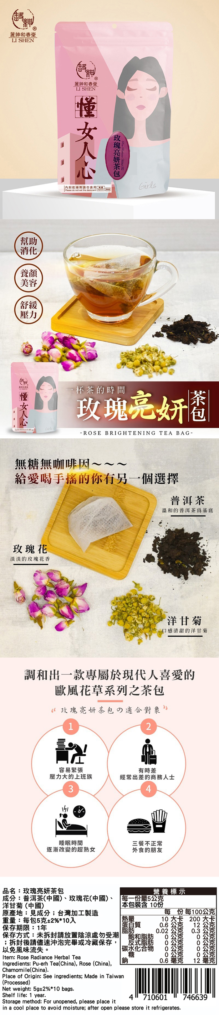 成份 : 普洱茶(中國)、玫瑰花(中國)、洋甘菊 (中國)