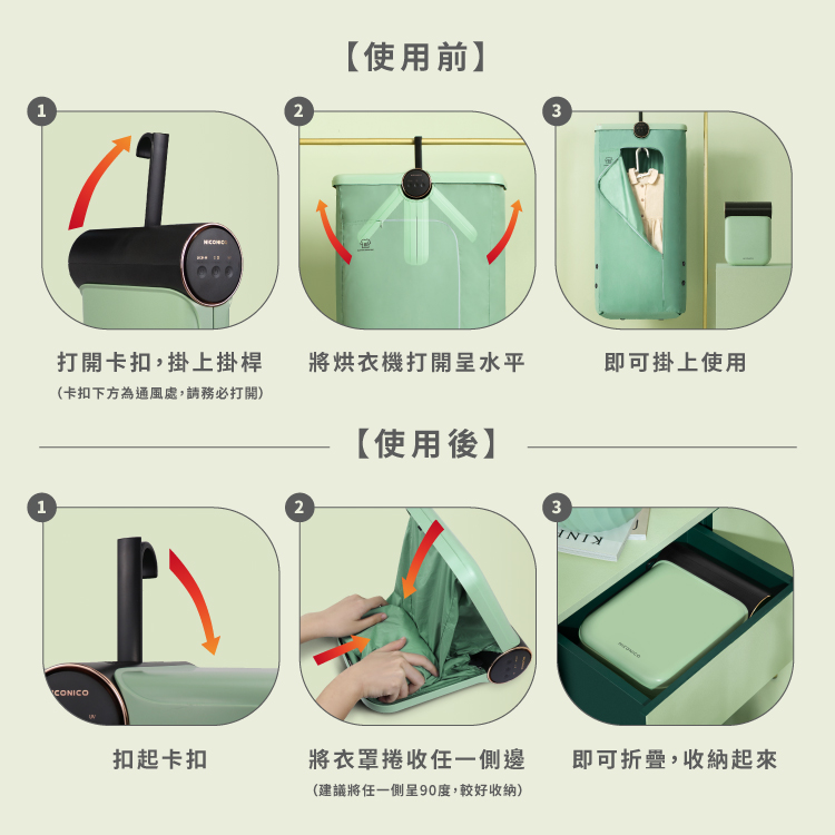 摺疊不佔位,乾爽隨時到位 小空間也能輕鬆烘衣,陰雨天、梅雨季的日常救星