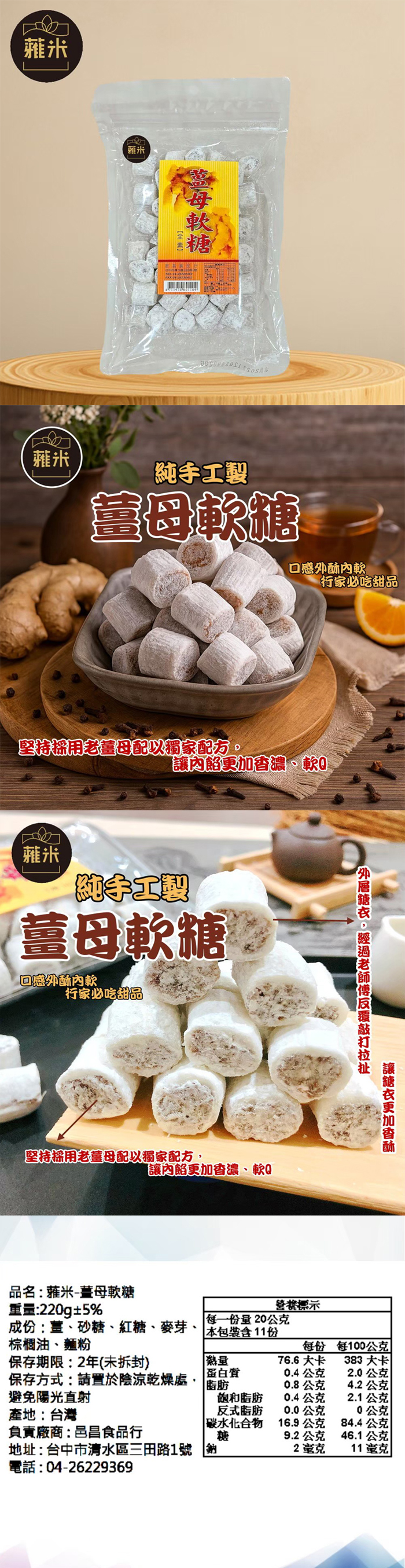 成份: 薑、砂糖、紅糖、麥芽、棕櫚油、麵粉