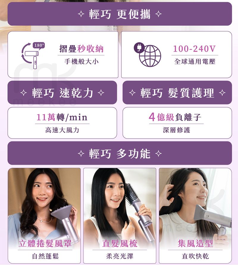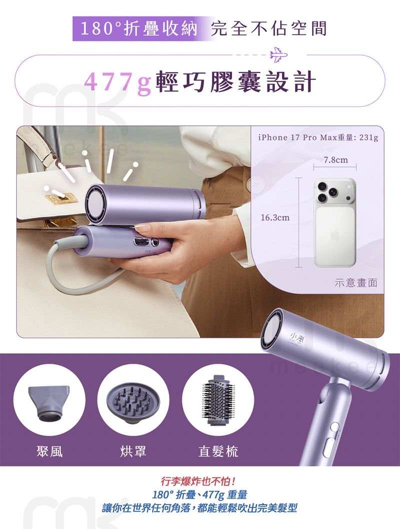 豪華配件版配件:聚風嘴、卷髮風罩、直髮梳、說明書