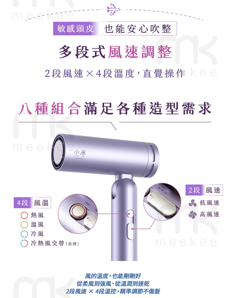 模式設定:8種模式(4段速風x2段溫度)
