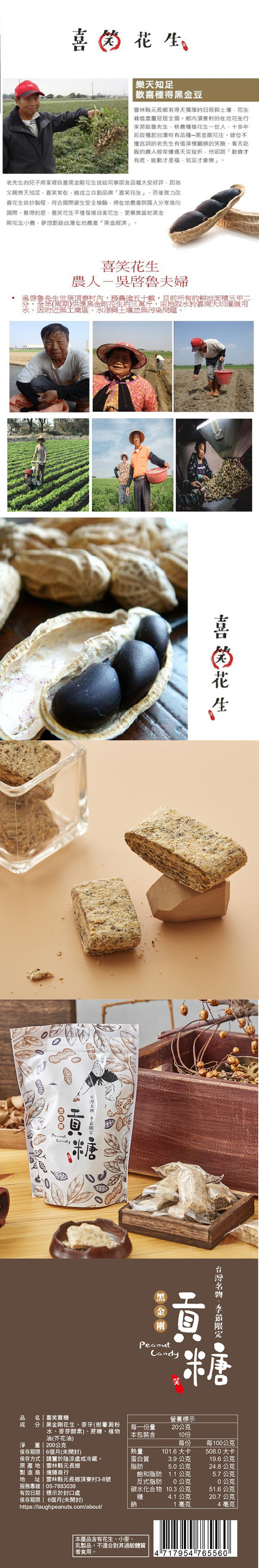 【喜笑花生】黑金剛花生貢糖(200g/包)x8包