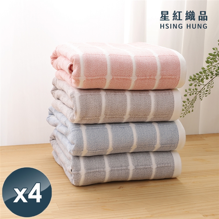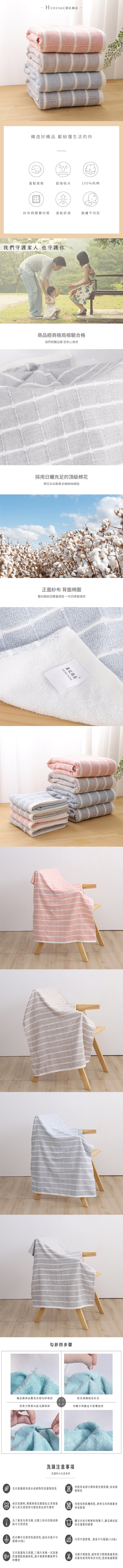 品名 : 極簡格子雙材質純棉速乾浴巾