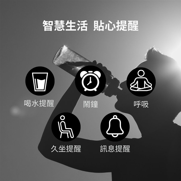 喝水提醒、久坐提醒、遠眺提醒、運動提醒、吃藥提醒、看書提醒、出行提醒、洗手提醒...等等。