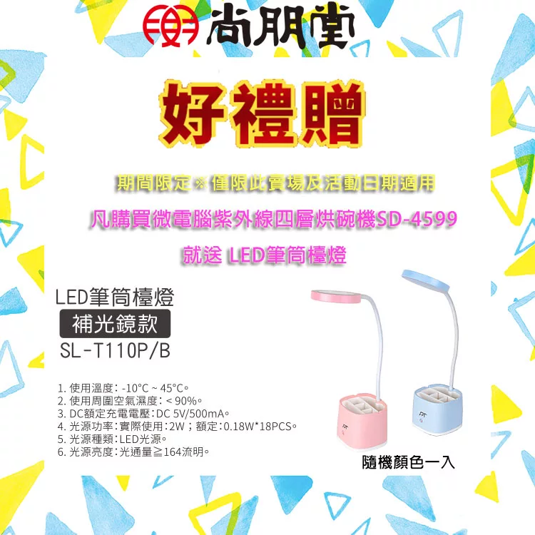 112年12月01日至113年02月29日購買烘碗機SD-4599即送檯燈SL-T110(隨機出色)