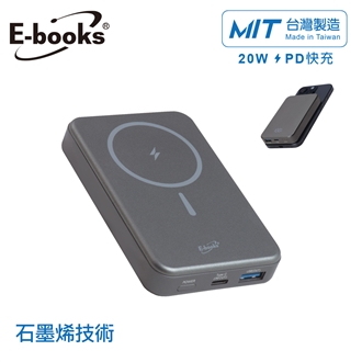 E-books B124【台灣製造】石墨烯技術三輸出鋁製磁吸數顯行動電源